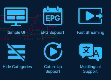 Do not buy an IPTV player separately. We take full responsibility for providing our clients, free of charge, with the best IPTV players available on the market. You’ll receive one app for your main TV and another for your second device of choice, whether it’s a second TV, laptop, or smartphone. If you need a third version or additional devices, they can be added at a small extra charge.